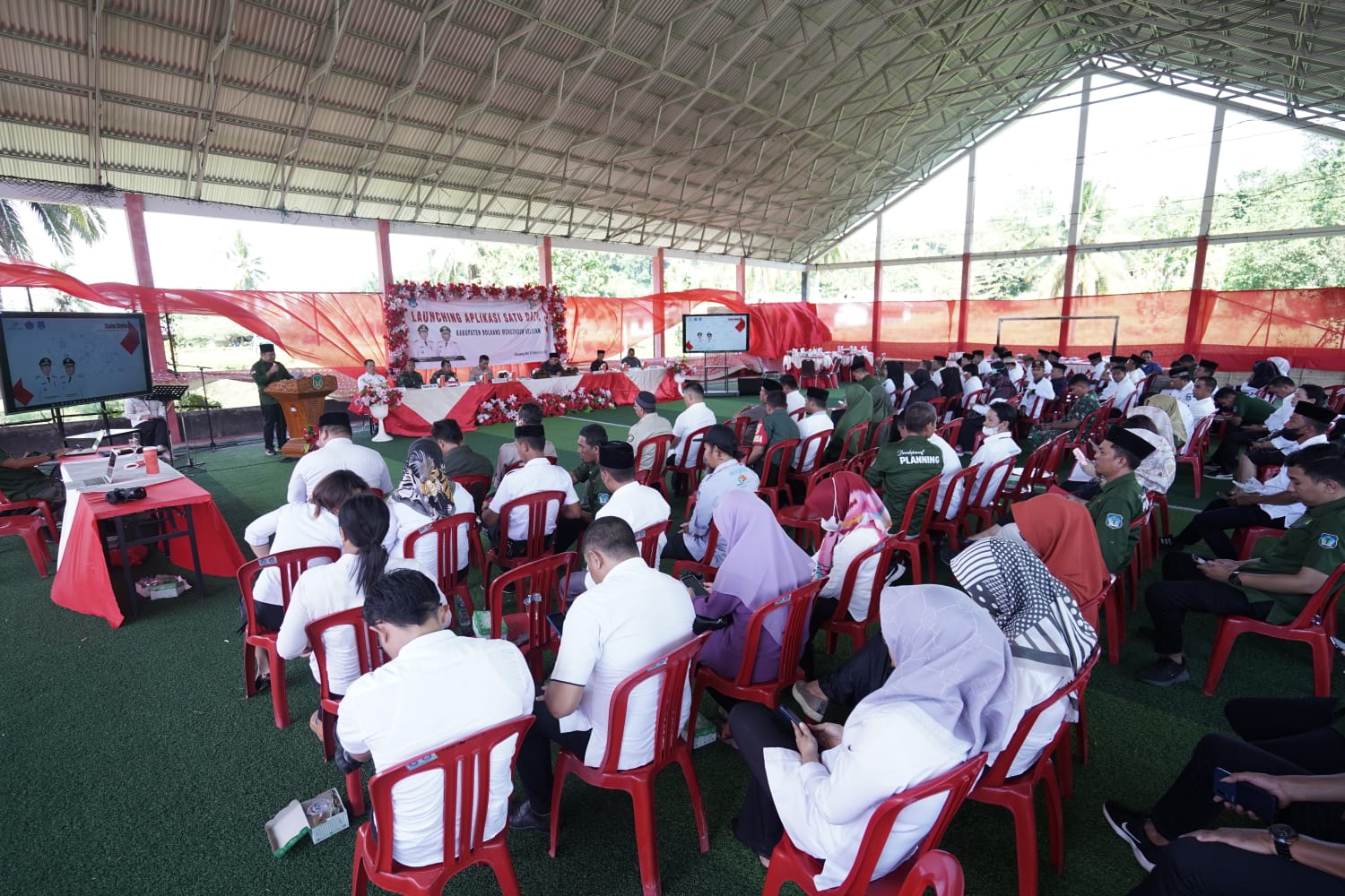 Acara Musrenbang yang dirangkaikan dengan Launching Aplikasi Satu Data Indonesia ini, dilaksanakan di Lapangan Futsal Kawasan Perkantoran Panango.