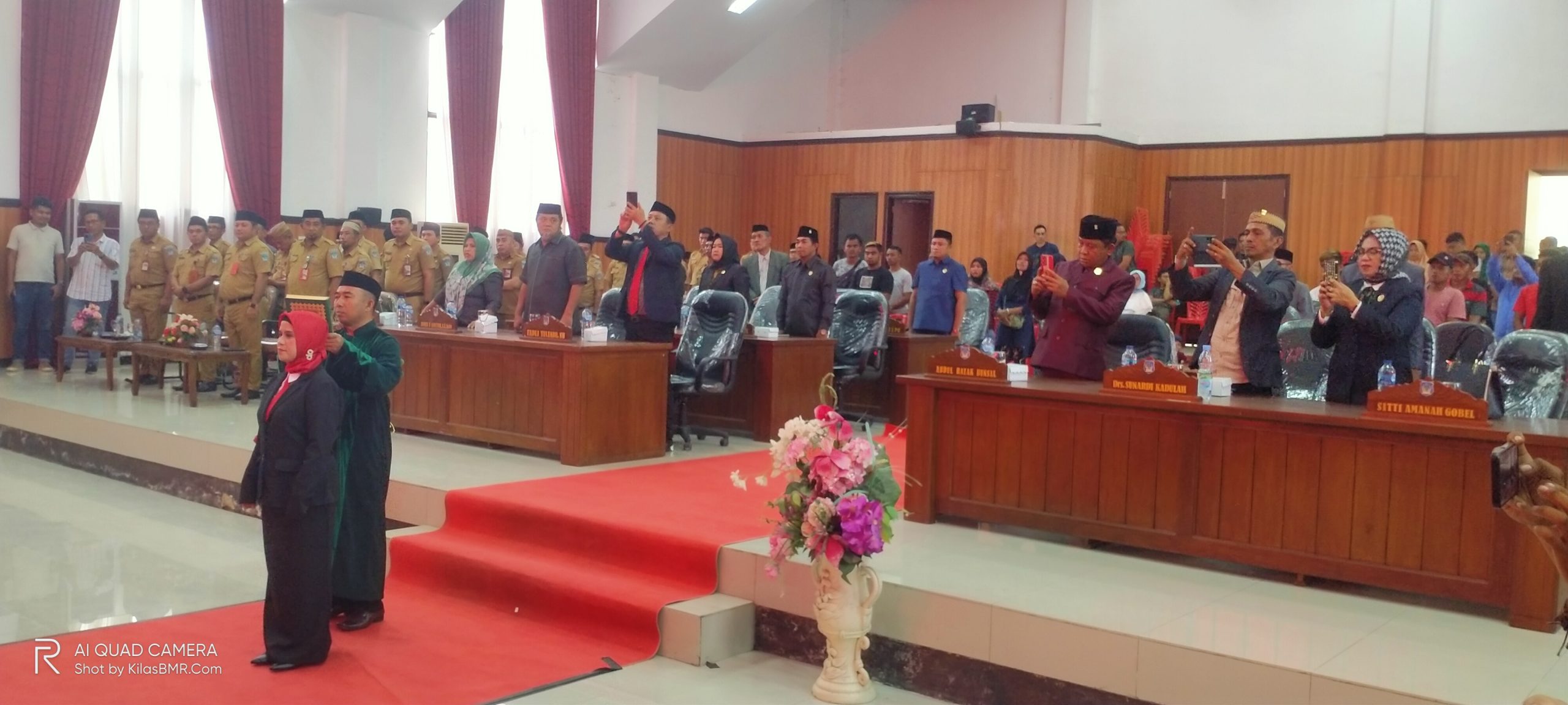 KILASBMR.Com,BOLSEL – Dewan Perwakilan Rakyat Daerah (DPRD) Bolaang Mongondow Selatan (Bolsel) menggelar Rapat Paripurna Peresmian pemberhentian Almarhumah Nelly I. Kasiaradja, Spd, sebagai anggota DPRD masa jabatan 2019-2024 dan peresmian pengangkatan Juraida sebagai Pengganti Antar Waktu (PAW) Anggota DPRD sisa masa jabatan 2019-2024, yang dilaksanakan di Ruang Rapat Paripurna DPRD Bolsel, Senin (13/02/2023).