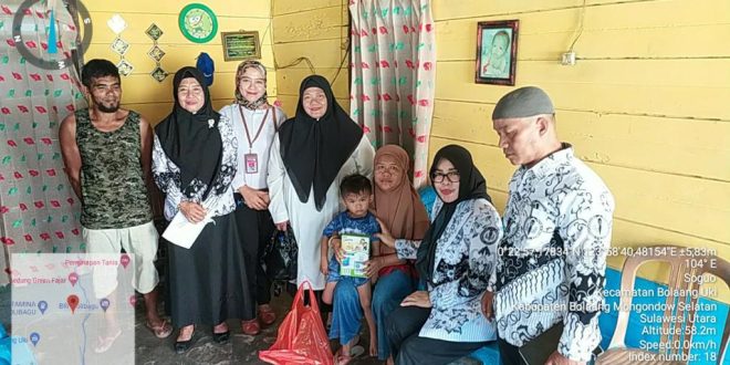 KILASBMR.Com,BOLSEL – Kepala Dinas (Kadis) Pendidikan dan Kebudayaan Kabupaten Bolaang Mongondow Selatan (Bolsel) Rante Hattani Spd MSi, bersama jajaran PGRI Bolsel menyalurkan bantuan stunting di Kecamatan Bolaang Uki, Rabu (15/03/2023).