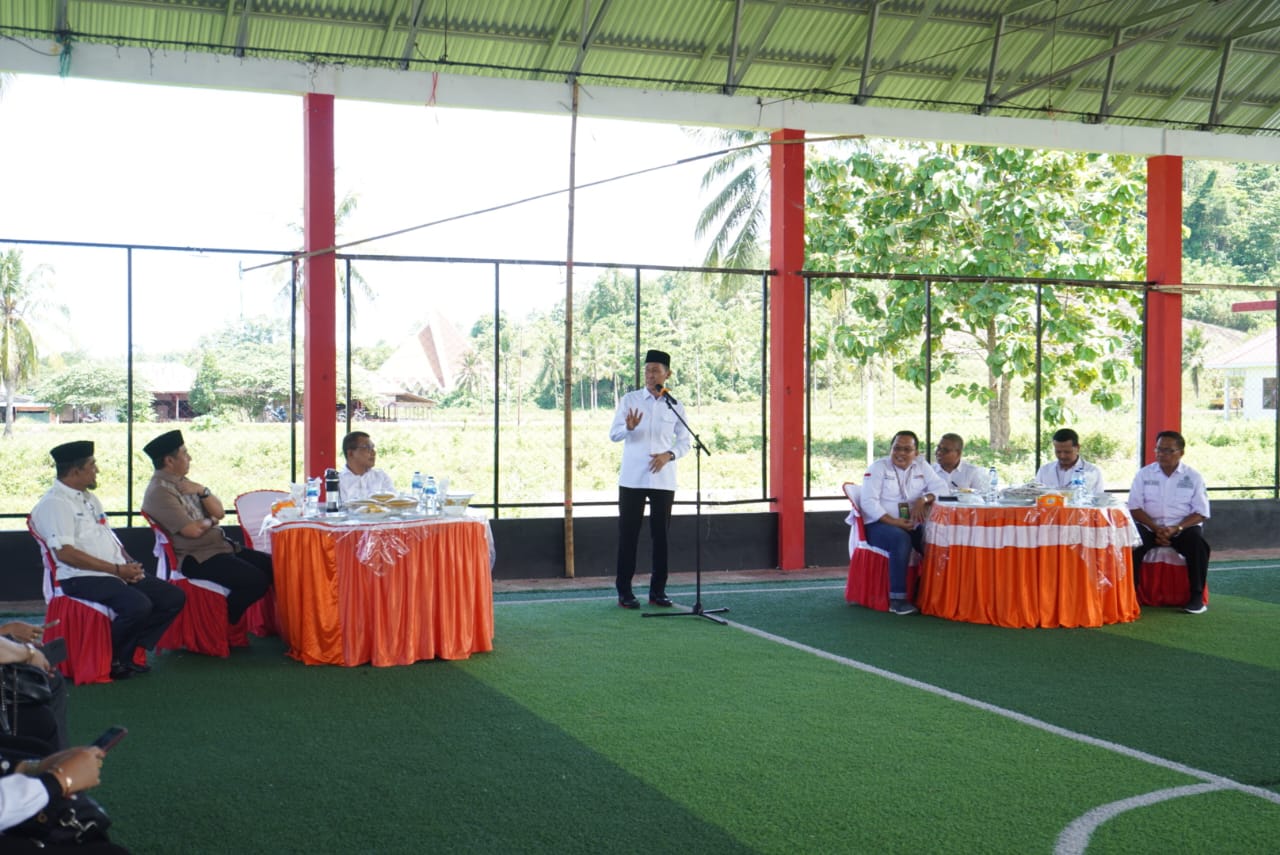 Setelah menggelar pertemuan di Ruang Rapat Berkah Kantor Bupati kemudian pertemuan dilanjutkan di Lapangan Futsal kawasan perkantoran Panango.