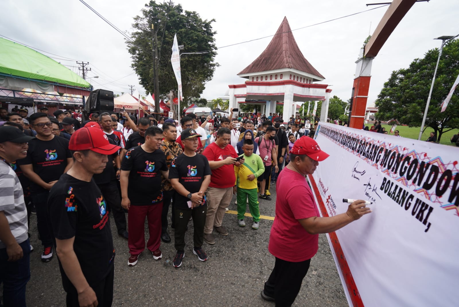 Acara diawali dengan Jalan Sehat di seputaran Alun-alun Molibagu lalu penyampaian Laporan Kegiatan dari Ketua Panitia dr. Sadli Mokodongan, dilanjutkan penandatanganan MoU dan soft launcing Mall Pelayanan Publik serta pencanangan zona integritas.
