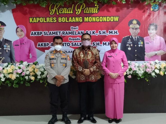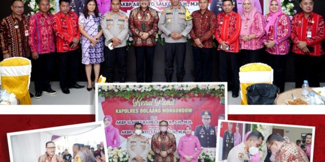 KILASBMR.Com,BOLMONG – Penjabat (Pj) Bupati Kabupaten Bolaang Mongondow (Bolmong) Ir Limi Mokodompit MM, hadiri kenal pamit, pejabat lama AKBP Slamet Ramelan SIK SH MH, kepada AKBP Arianto Salkery SH MH, bertempat di kantor Polres Bolmong, Kamis (13/07/2023).