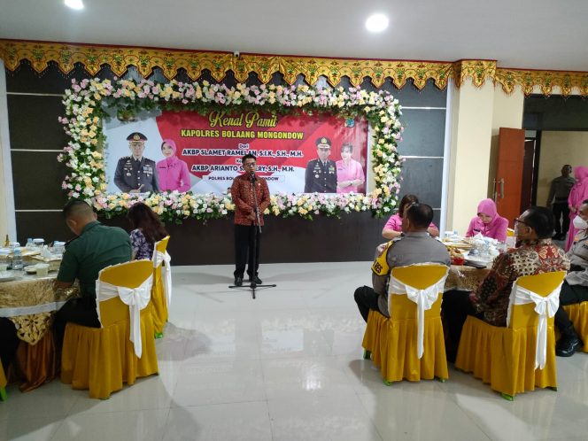 Sementara itu, Pj Bupati Bolmong Ir Limi Mokodompit MM, yang diwakili Sekda Tahlis Gallang dalam sambutannya mengatakan, atas nama Pemkab Bolmong dan masyarakat banyak selamat kepada pejabat baru Kapolres Bolmong AKBP Arianto Salkery SH MH.
