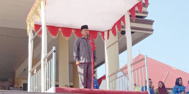 “Pak Bupati lagi hadir rapat seluruh penjabat kepala daerah se-Indonesia di istana Presiden. Sehingganya pak bupati memberikan tugas kepadanya untuk memimpin upacara pada hari ini,” katanya.