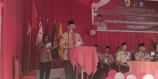 KILASBMR,KOTAMOBAGU – Penjabat (Pj) Wali Kota Kotamobagu Asripan Nani, menghadiri Musyawarah Cabang (Muscab) ke-2 Gerakan Pramuka Kwartir Cabang (Kwarcab) Kotamobagu Tahun 2023, bertempat di Aula SMAN I Kotamobagu, Jumat (20/10).