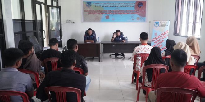 KILASBMR.Com,BOLSEL – Dinas Komunikasi dan Informatika (Diskominfo) Kabupaten Bolaang Mongondow Selatan (Bolsel) menyelenggarakan acara Sosialisasi Peran PPID dan Penggunaan Aplikasi Layanan Humas dan Digitalisasi Informasi (PINAHANGI) bertempat di Ruang Rapat Diskominfo, Kawasan Perkantoran Panango, Kec. Bolaang Uki, Kamis (9/11/2023).