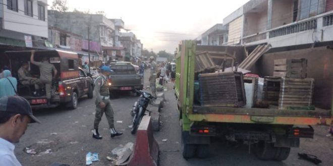 KILASBMR,KOTAMOBAGU – Para pedagang di Pasar 23 Maret, Kelurahan Gogagoman, Kecamatan, Kotamobagu Barat, Kota Kotamobagu ditertibkan oleh personil Satuan Polisi Pamong Praja (Satpol PP), Selasa (05/12).