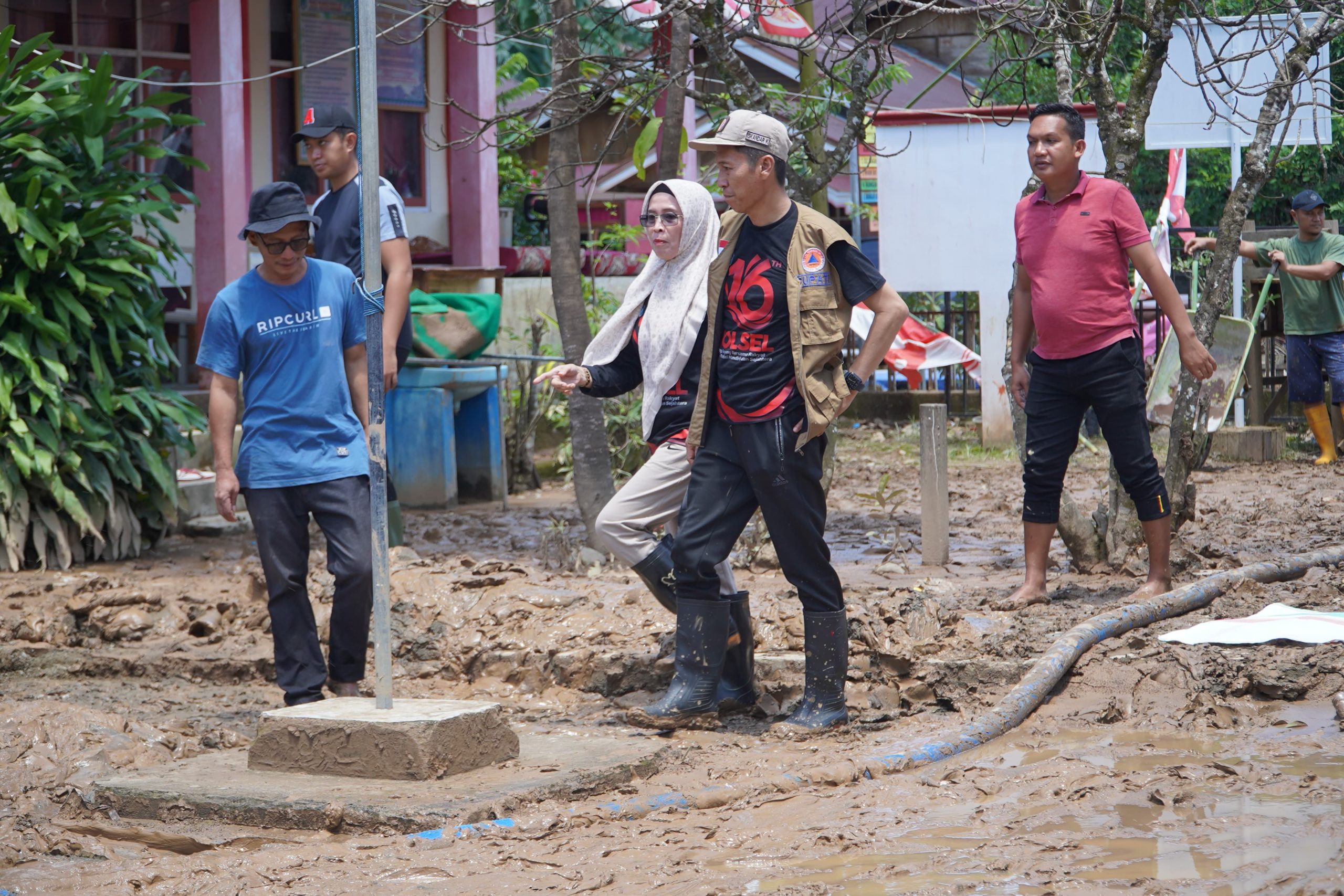 Di lokasi, orang nomor satu Bolsel ini memerintahkan setiap pimpinan OPD mengontrol bawahan dan ikut terlibat langsung melakukan pembersihan lumpur sisa banjir yang masih ada di rumah warga, tempat ibadah dan sekolah.