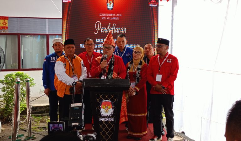 Keduanya datang ke KPU untuk melakukan pendaftaran sebagai calon Wali Kota dan Wakil Wali Kota Kotamobagu.