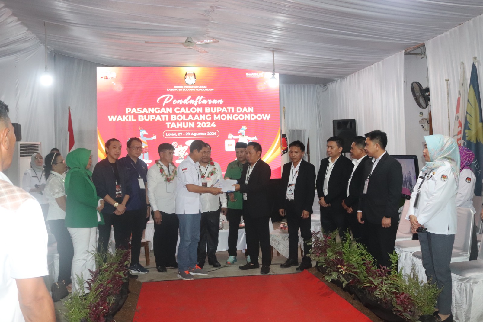 Pasangan Sukron – Refly resmi mendaftar ke KPU Bolmong didampingi Partai Koalisi, Kamis (29/08/2024) pada pukul 15.00.Wita.