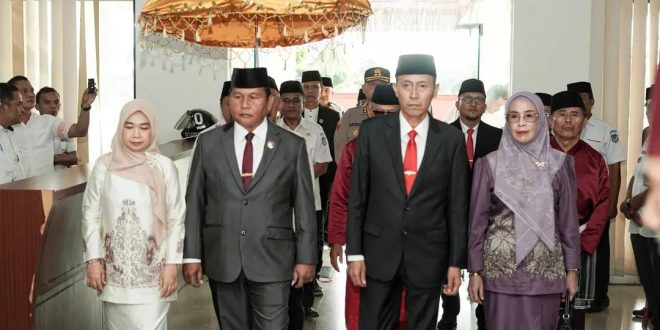 KILASBMR.Com,BOLSEL – Bupati dan Wakil Bupati Kabupaten Bolaang Mongondow Selatan (Bolsel) H. Iskandar Kamaru, Spt. Msi dan Deddy Abdul Hamid, disambut secara adat di Kantor DPRD Bolsel, Rabu (05/03/2025).