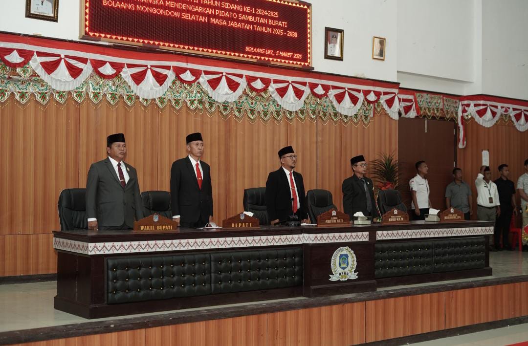 Acara yang berlangsung di Ruang Sidang Paripurna DPRD Bolsel, Kawasan Perkantoran Panango, Kec. Bolaang Uki, Rabu (5/3/2025) diawali penyambutan dengan prosesi adat Mongondow, Bolango, Gorontalo dan Sangihe.