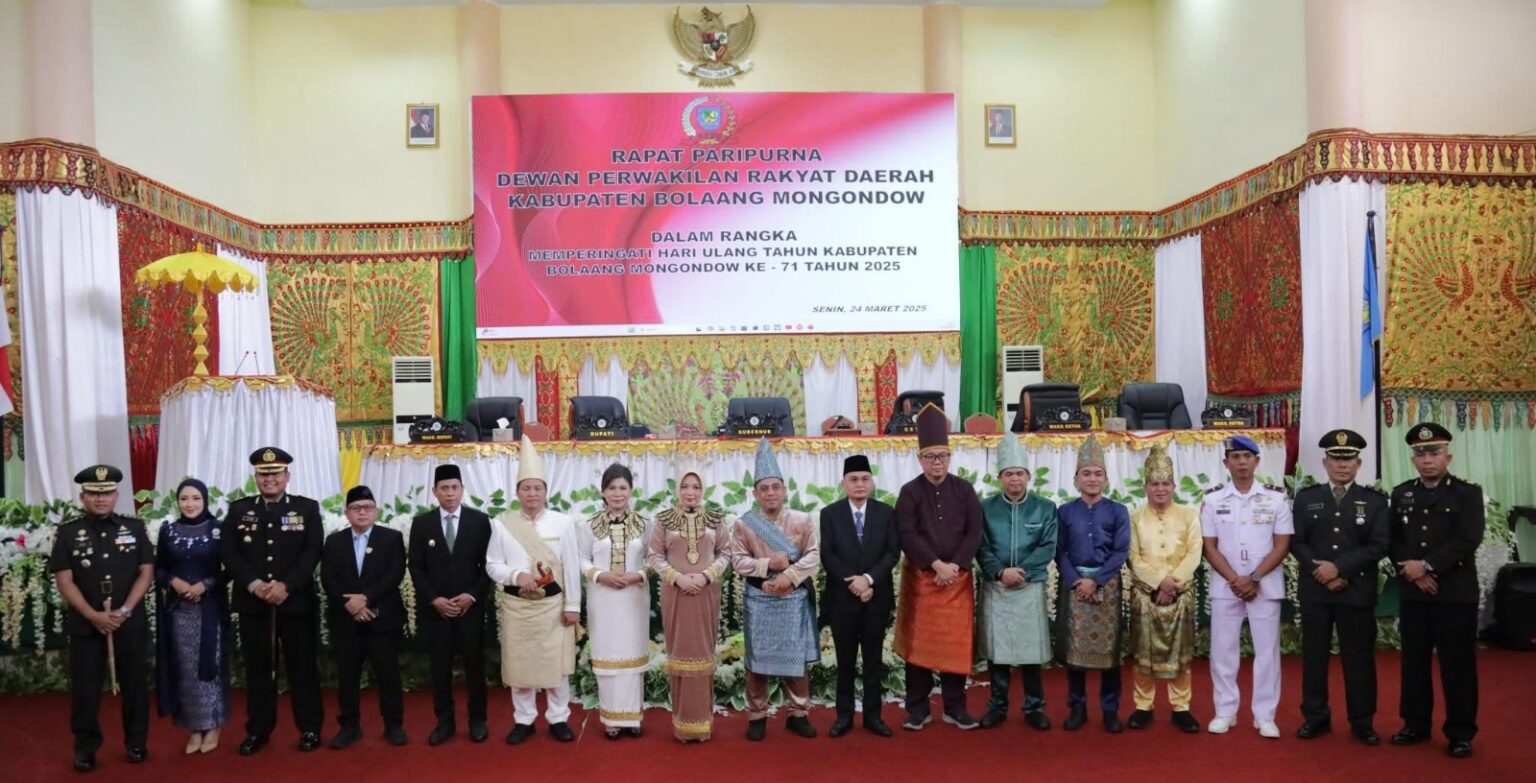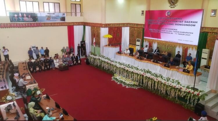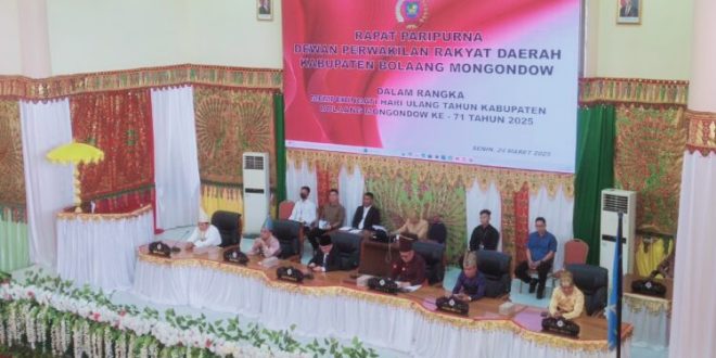 KILASBMR.Com,BOLMONG – Dewan Perwakilan Rakyat Daerah (DPRD) menggelar rapat paripurna istimewa peringatan Hari Ulang Tahun (HUT) Kabupaten Bolaang Mongondow (Bolmong) ke-71, Senin 24 Maret 2025.