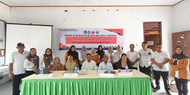 KILASBMR.Com,BOLSEL – Kepala Dinas Pendidikan dan Kebudayaan (Disdikbud) Bolaang Mongondow Selatan (Bolsel) melalui Sekretaris Dinas Pendidikan dan Kebudayaan, Delfian G. Thanta, S.Kom., MM., secara resmi membuka kegiatan Penyusunan Kurikulum Jenjang SMP Tahun Pelajaran 2025/2026, yang diselenggarakan oleh Musyawarah Kerja Kepala Sekolah (MKKS) bertempat di SMP Muhammadiyah, Bolaang Uki, Rabu, 30 Juli 2025.