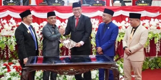 Penetapan itu disampaikan dalam Rapat Paripurna DPRD Kabupaten Bolmong, yang pimpin oleh Ketua DPRD, Tony Tumbelaka, bersama kedua Wakil Ketua dan dihadiri langsung oleh Bupati, Yusra Alhabsyi bersama Wakil Bupati, Dony Lumenta, Sekda, para anggota legislatif, para Asisten Setda, pimpinan OPD, Camat dan ASN di lingkup Pemkab setempat, Jumat (15/08/2025).