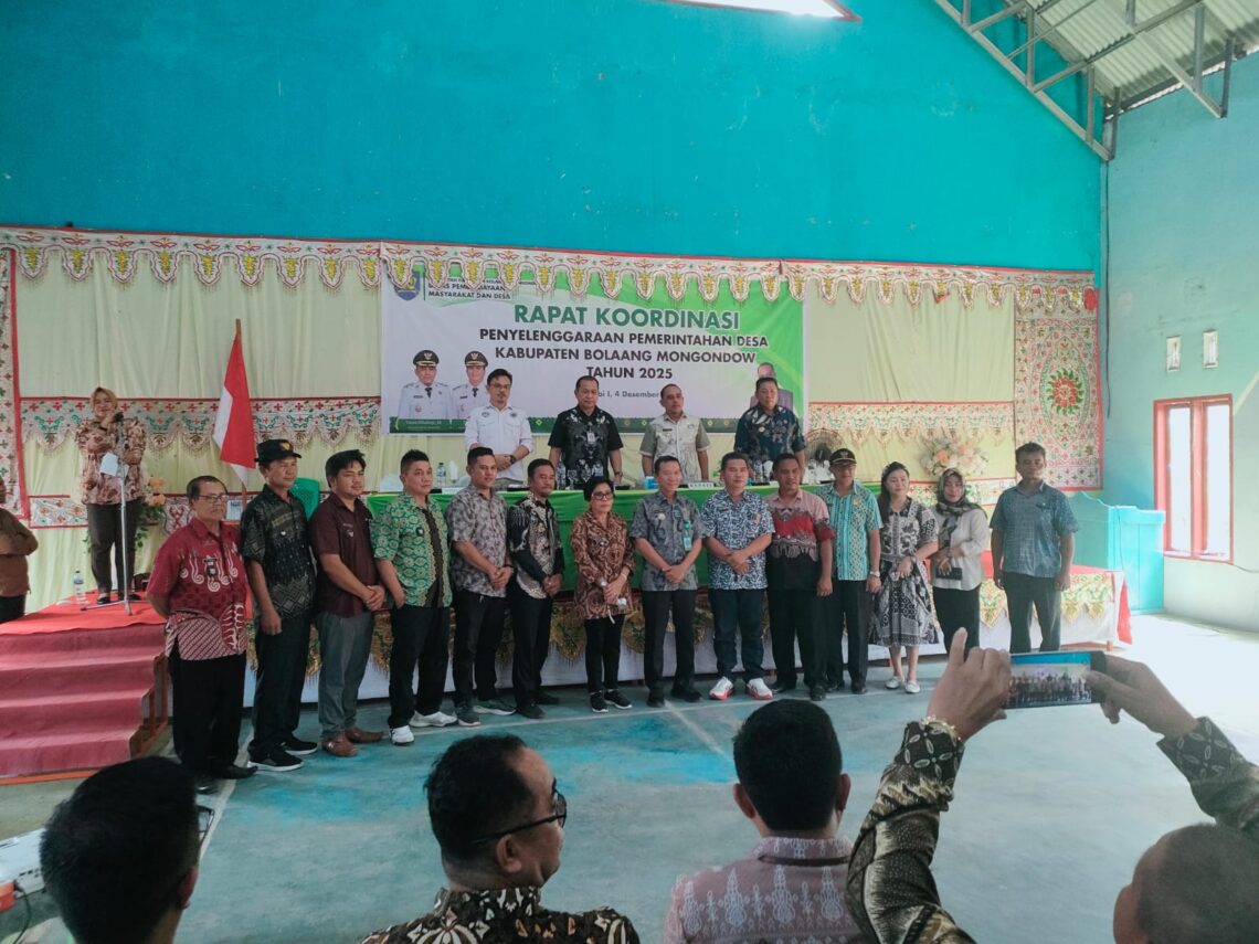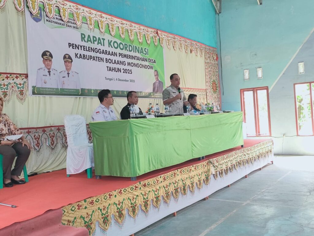 KILASBMR.Com,BOLMONG – Pemerintah Kabupaten Bolaang Mongondow (Bolmong) menggelar Rapat Koordinasi (Rakor) Penyelengaraan Pemerintahan Desa Tahun 2025, yang dilaksanakan di Balai Desa Tungoi, Kecamatan Lolayan, Kamis (04/12/2025).
